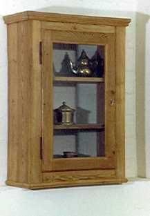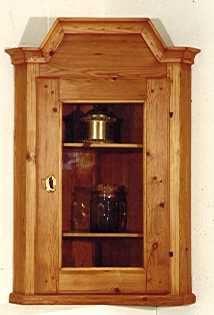 Beschrieb: Hänge-Eck-Vitrine, alles voll massiv Kiefernholz,mit Holznägeln, gewachst, z.T. neu