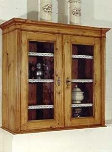 Beschrieb: Hängeschrank, alles voll massiv Fichtenholz mit Glasfüllung, geschweift, handgezinkt, gewachst.