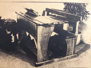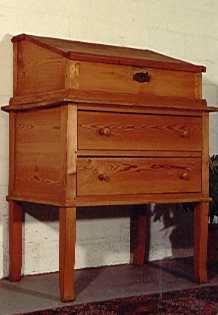 Beschrieb: Stehpult mit Schublade, alles voll massiv Fichten- u. Buchenholz, handgezinkt, gewachst.