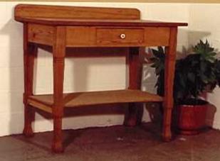 Beschrieb: Frisiertisch mit Schublade, alles voll massiv Fichten- u. Buchenholz, handgezinkt, gewachst.