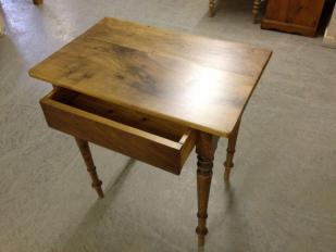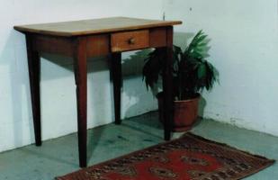Beschrieb: Tisch in Fichtenholz gewachst mit 1 Schublade. Blatt und Schublade innen lackiert
