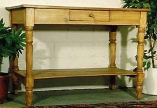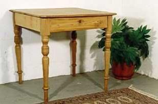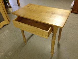 Beschrieb: Tisch mit 1 Schublade, alles voll massiv Kiefernholz, handgezinkt, gewachst.