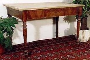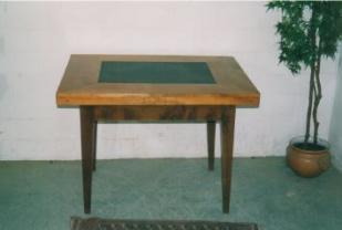 Beschrieb: Tisch mit Schublade, alles Nussbaum,Blatt massiv, handgezinkt, gebeizt und lackiert
