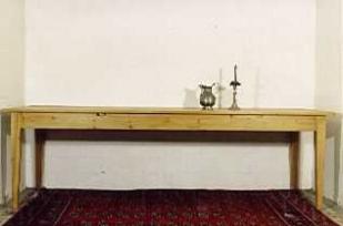 Beschrieb: Tisch, alles voll massiv Kiefernholz, mit Hoznägeln, gewachst.