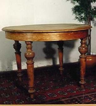 Beschrieb: ovaler Tisch, alles voll massiv Kiefernholz, gewachst.